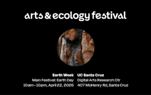 The UCSC Arts & Ecology Festival brings us together to consider how creative practice connects us to land, water, food, and the ecosystems we depend on. Through dialogue and shared inquiry, we reflect on history, justice, and our shared responsibility to care for human and more-than-human worlds alike. Together, we encourage bold experimentation, interdisciplinary exchange, and collective climate action among students, faculty, researchers, artists, designers, scientists, writers, and community partners.